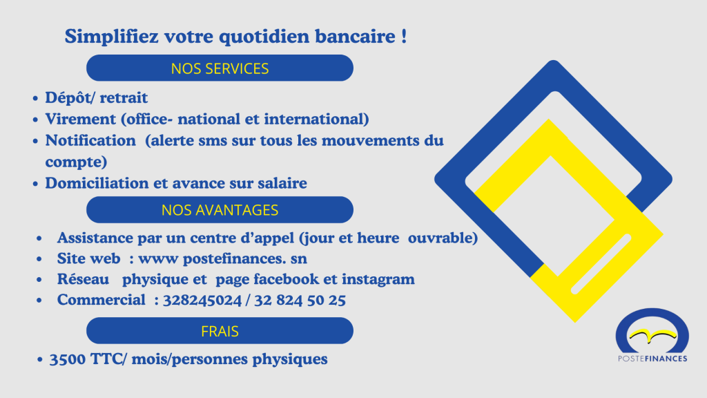 POSTEFINANCES est la filiale du Groupe La Poste qui gère les produits financiers postaux (comptes courants postaux CCP, les comptes d’épargne, transfert etc…). Elle assure des services financiers de proximité sur l’ensemble du territoire avec plus de 300 agences et bureaux de Poste.